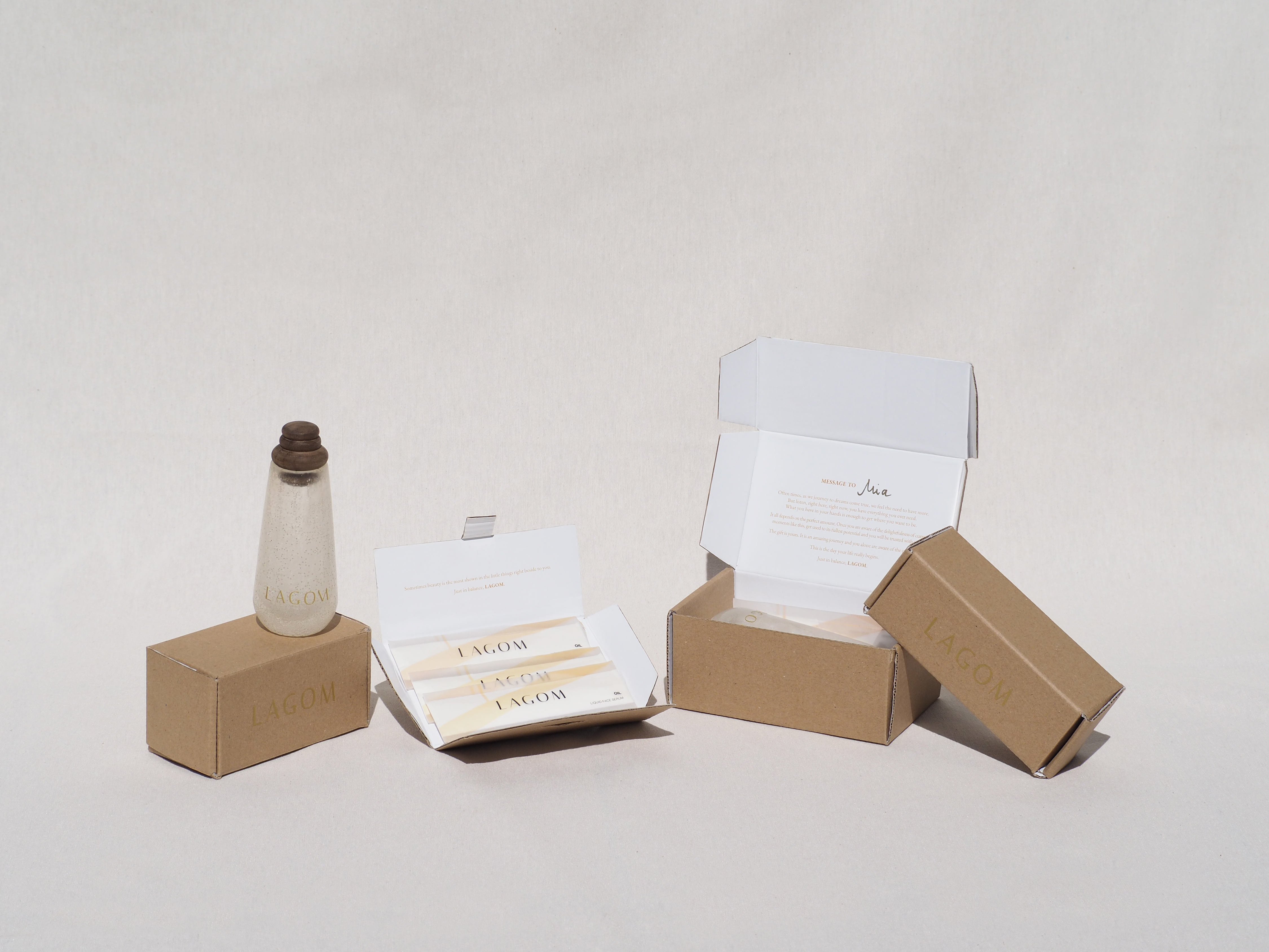 lagom is supplied to the customers in personalized recycled cardboard packages